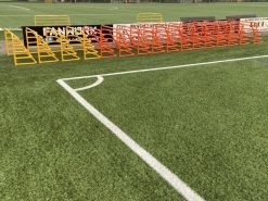 Dit aluminium trainingsdoel is door het gebruik van aluminium licht in gewicht en gemakkelijk te verplaatsen. Het trainingsdoel heeft een afmeting van 150x75cm en een vriendelijke en speelse uitstraling. Op de afbeelding is het trainingsdoeltje uitgevoerd met een RAL-coating. Deze vereniging heeft de trainingsdoeltjes voor de verschillende velden verschillende kleuren gegeven. Ideaal om zo alles uit elkaar te houden!