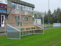 Een dug-out met een aluminium onderzijde. Ideaal om iedereen beschut te laten zitten voor de regen! De dug-out wordt standaard volledig gelast geleverd in uit speciale aluminium profielen opgebouwd