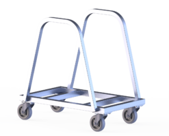 Praktische hockeybalkenwagen van 160×80 cm. Uitgevoerd met houten plaat, 2 vaste en 2 zwenkwielen en uitneembare ronde buizen voor makkelijk transport en opslag.