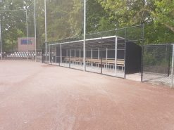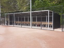 De aluminium dug-out ongemonteerd bestaat uit gelaste componenten i.v.m. vervoer en wordt standaard geleverd met 6mm dik Trespa beplating.