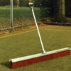 Deze sleepbezem smal heeft een sleepbreedte van 1,35m en is verkrijgbaar met trekbeugel of met D-greep inclusief blokbezems (rood kunststof, middelhard).