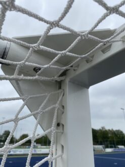 - Voorzien van ingefreesd nethaaksysteem waarbij elke maas van het net in het doelkader is opgesloten en gezekerd wordt door een sluitlijst