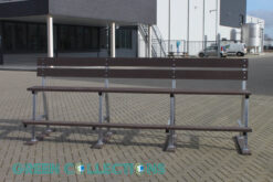 Deze tribunebank met dubbele zitrij, van aluminium met gerecyclede petflesplanken heeft een lengte van 3,5 meter. De hoge zitting zorgt ervoor dat u goed zicht heeft op het speelveld. Erg geschikt voor bijvoorbeeld tennis of korfbal!