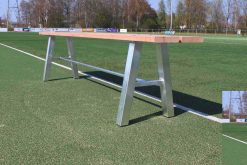 Zitbank zonder rug, uitgevoerd met gerecyclede PET-fles planken. De zitbank heeft breedte van 1,8 meter en heeft een zitbreedte van 24cm. Een mooi duurzaam alternatief voor op sportvelden of indoor sportaccommodaties!